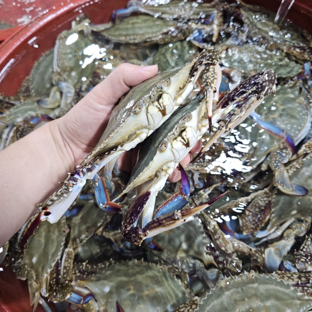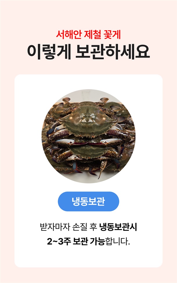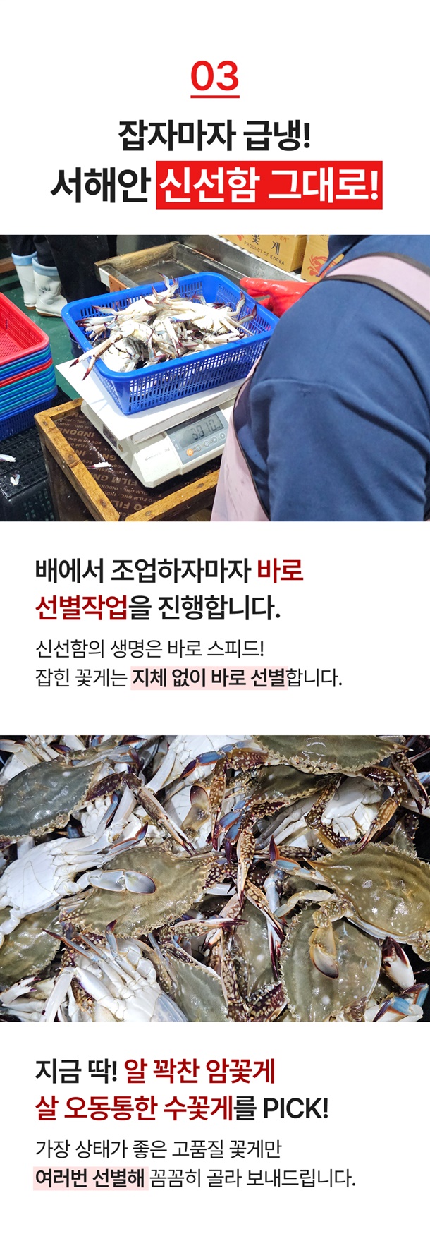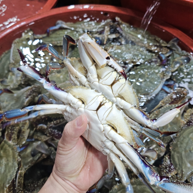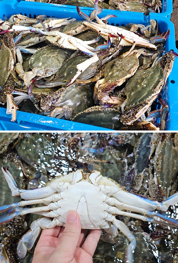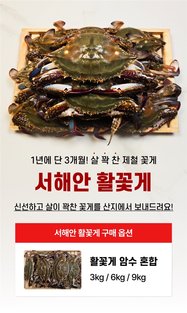 서해안에서 제철을 맞아 잡아올린 싱싱한 활 꽃게 입니다.
