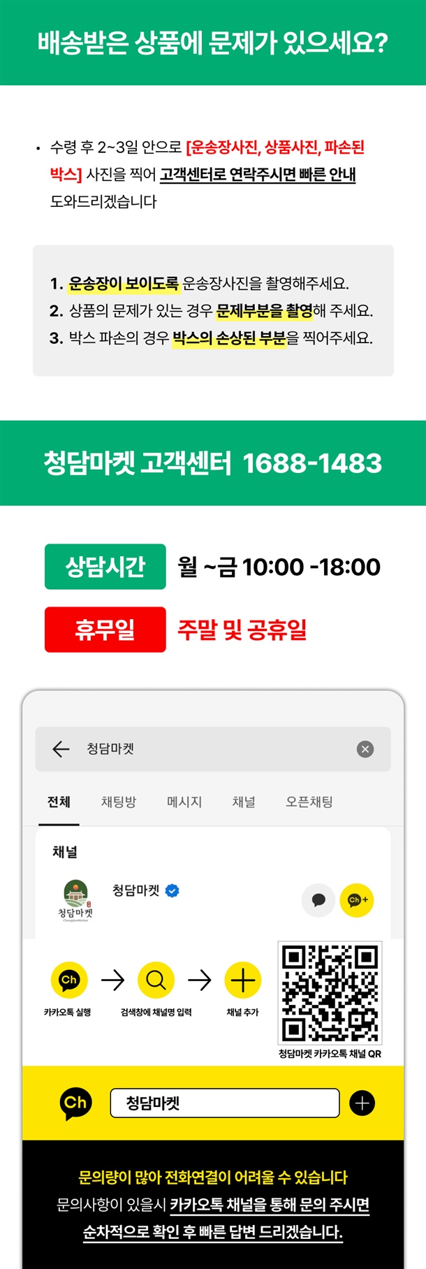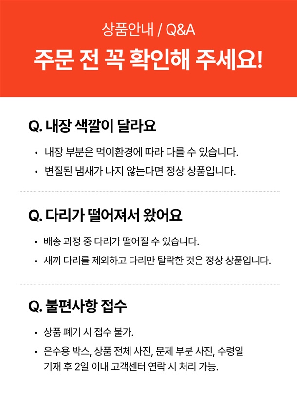 · 상품 불량 사유와 사진을 남겨 주시면 빠른 처리가 가능합니다.