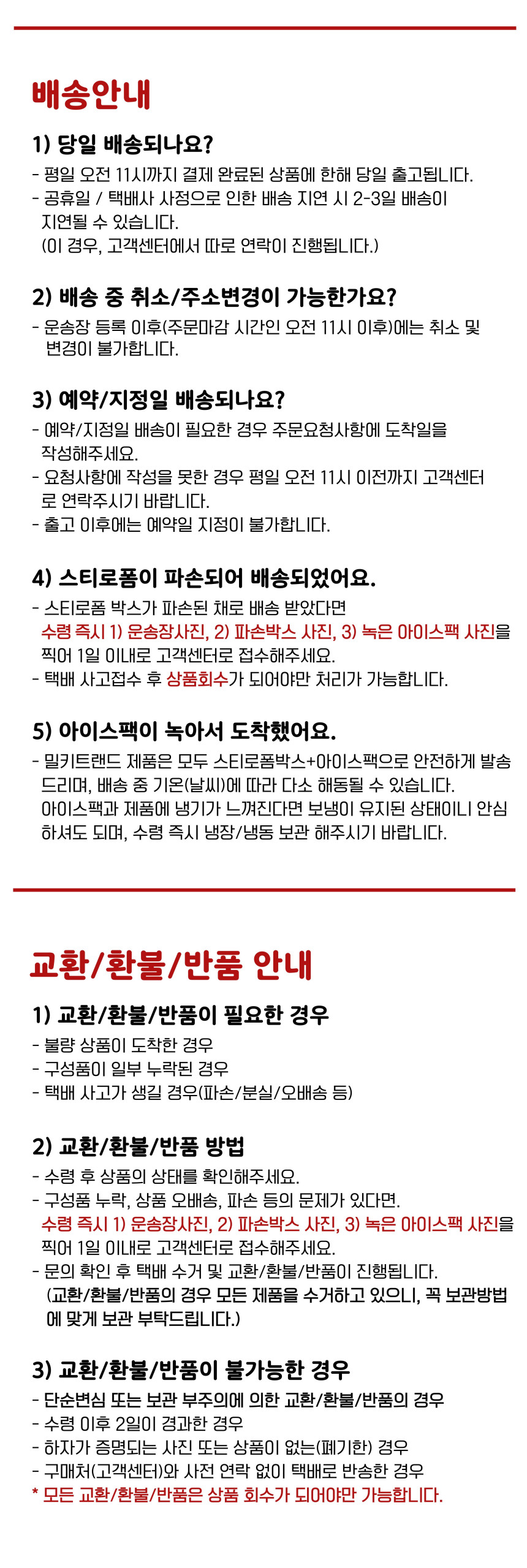 · 교환/반품 신청은 배송완료 후 7일 이내에 가능합니다.