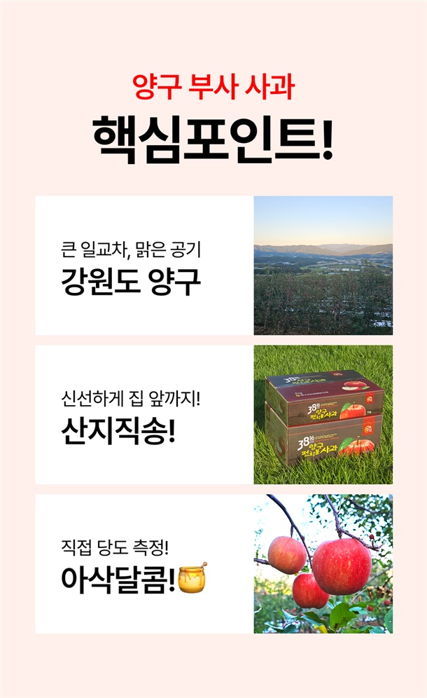 군사분계선 바로 앞! 해발고지 600미터 높이의 천혜의 자연환경이 만들어 키운 명품사과!