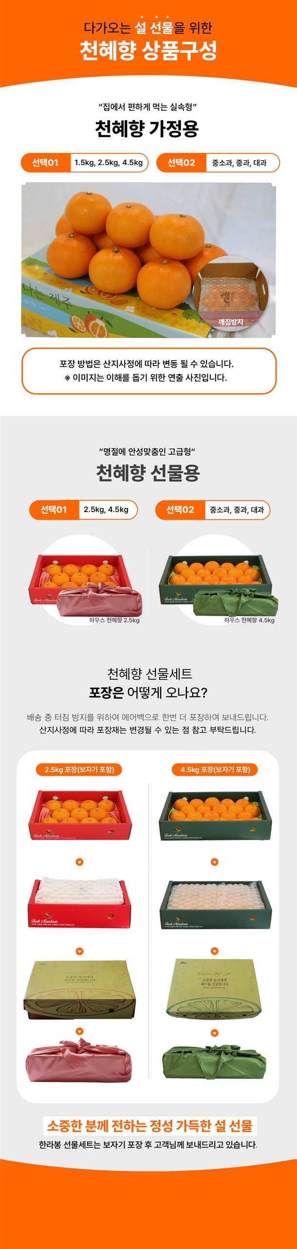 제주 천혜향 선물용/가정용 1.5kg, 2.5kg, 4.5kg